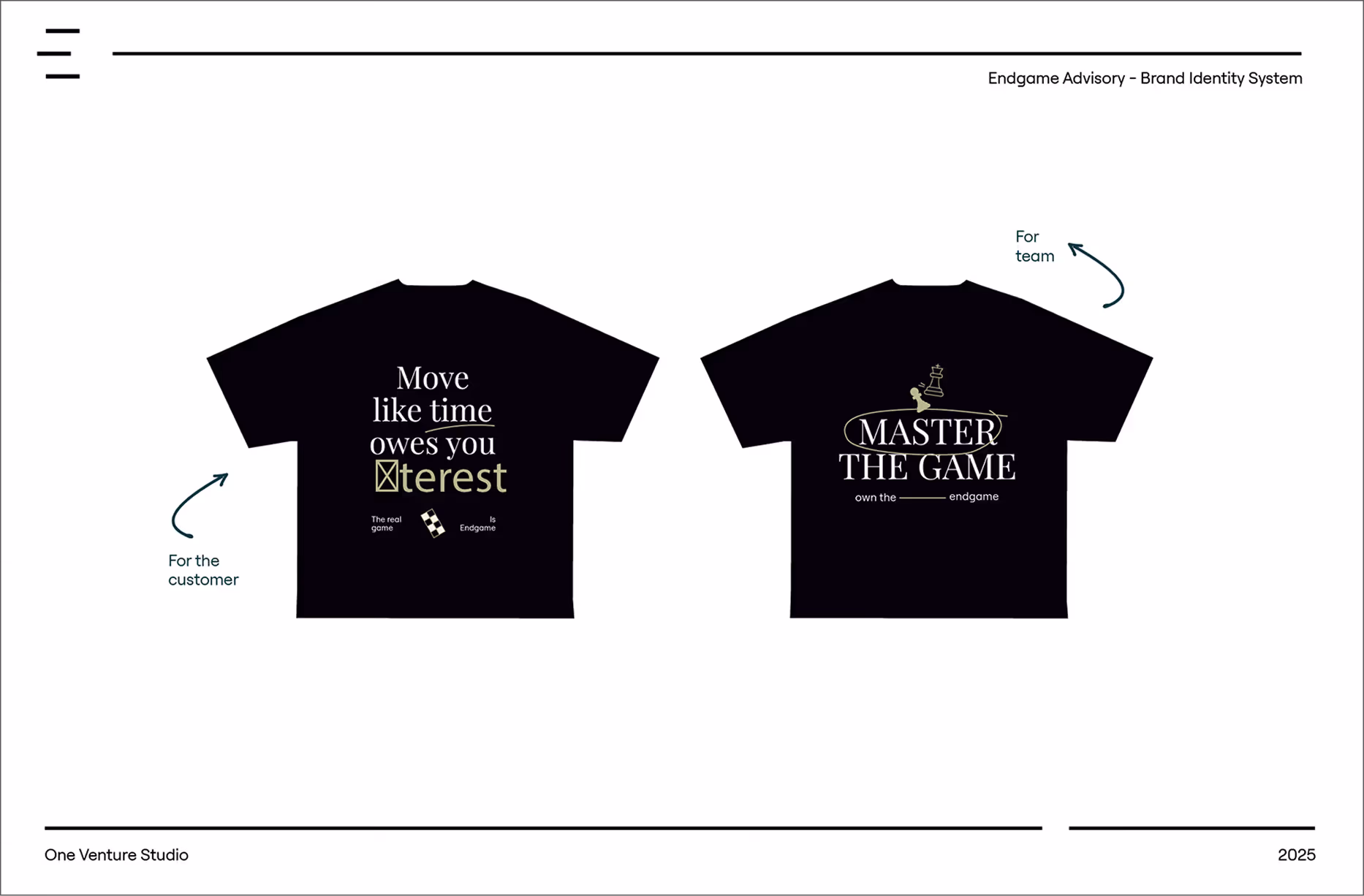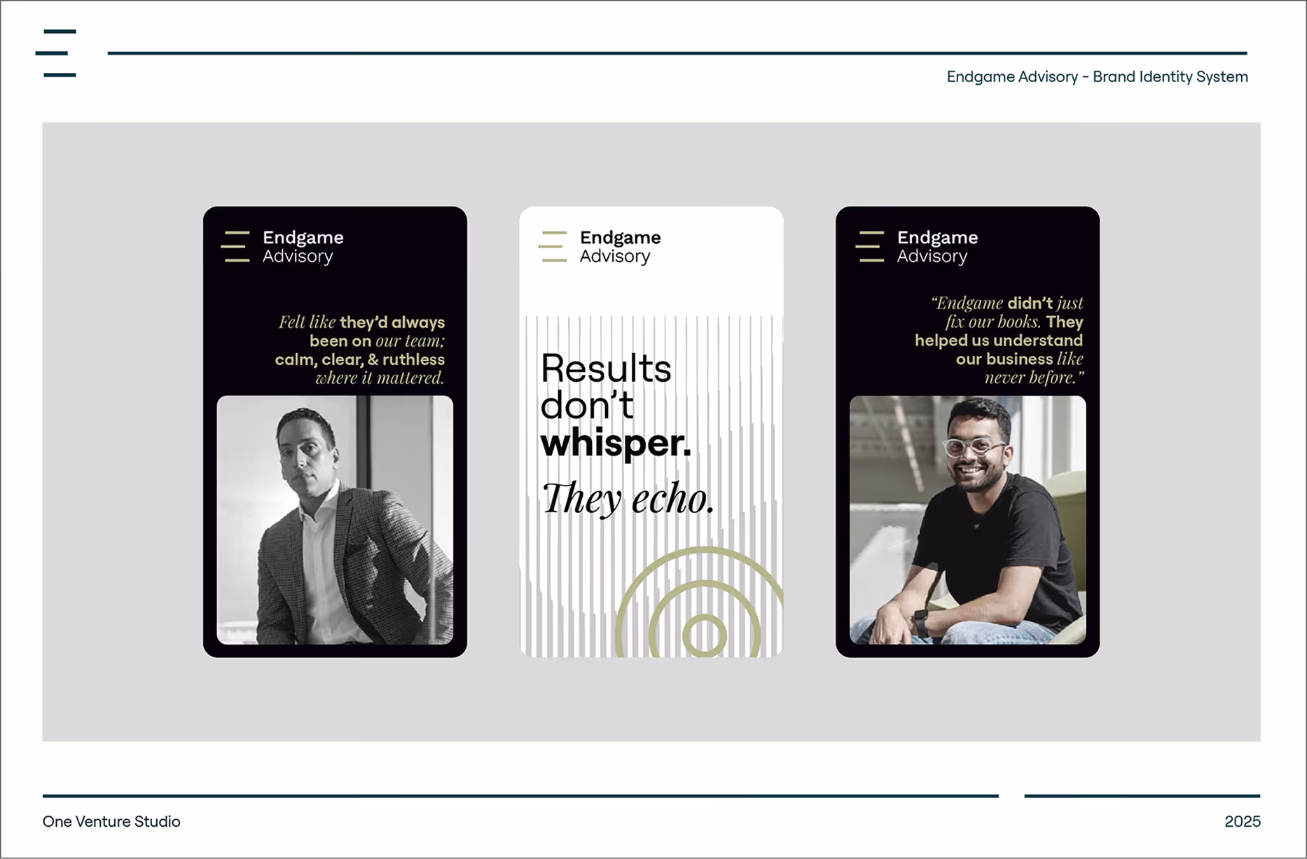 As an advisory firm supporting founders through growth and capital inflection points, the business needed its brand to show up with the same sharpness internally as it did externally — across team, clients, and public-facing moments.